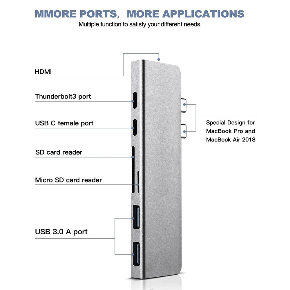 USB C Hub,7 in 1 Type C Hub Aluminum Adapter